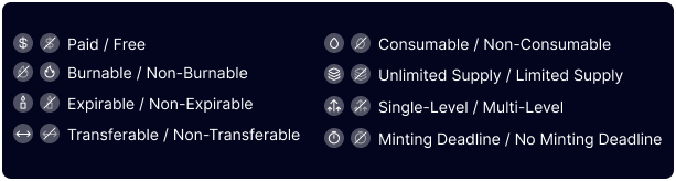 Badge Property: Lists customizable parameters (e.g., transferability).